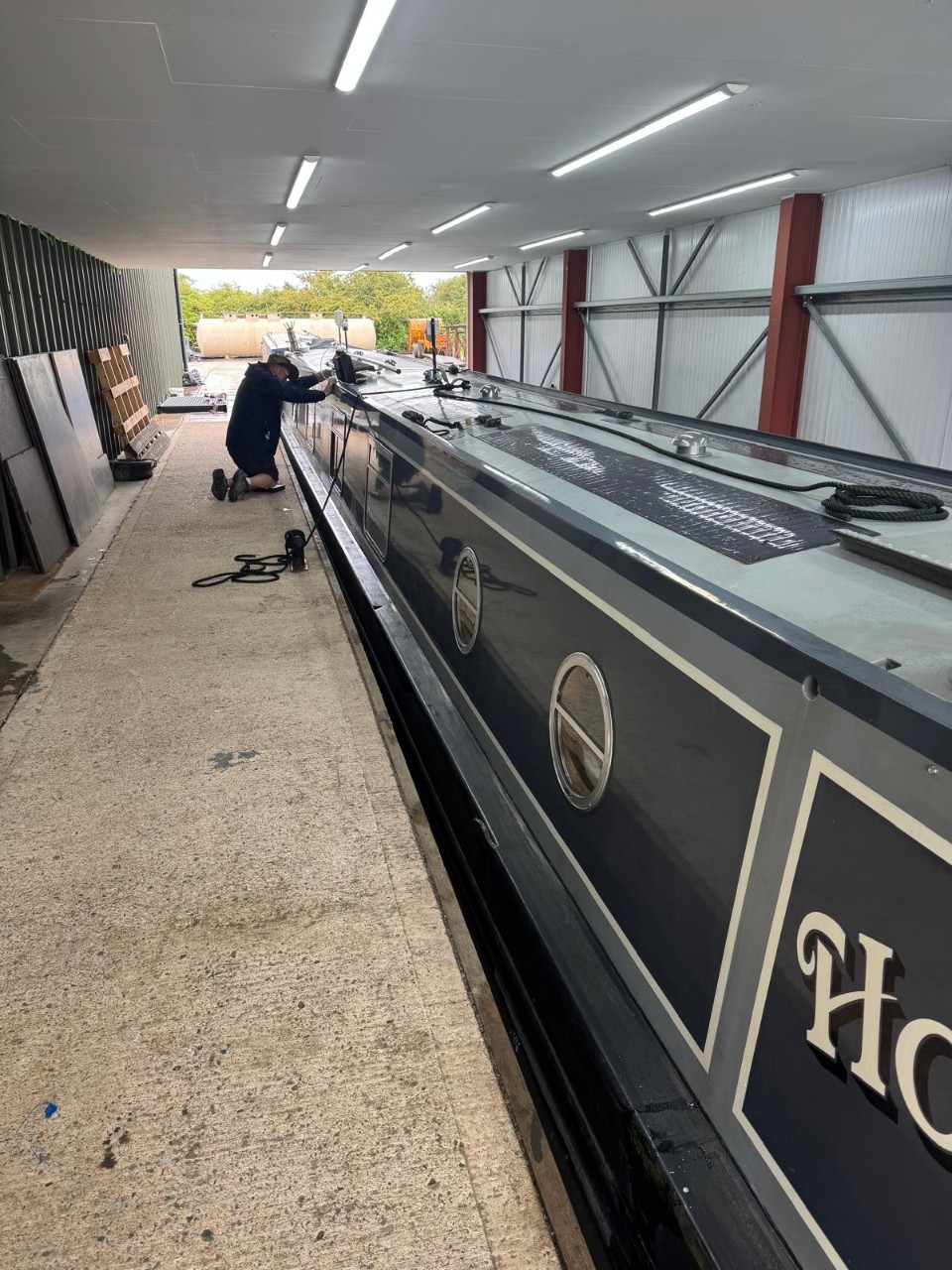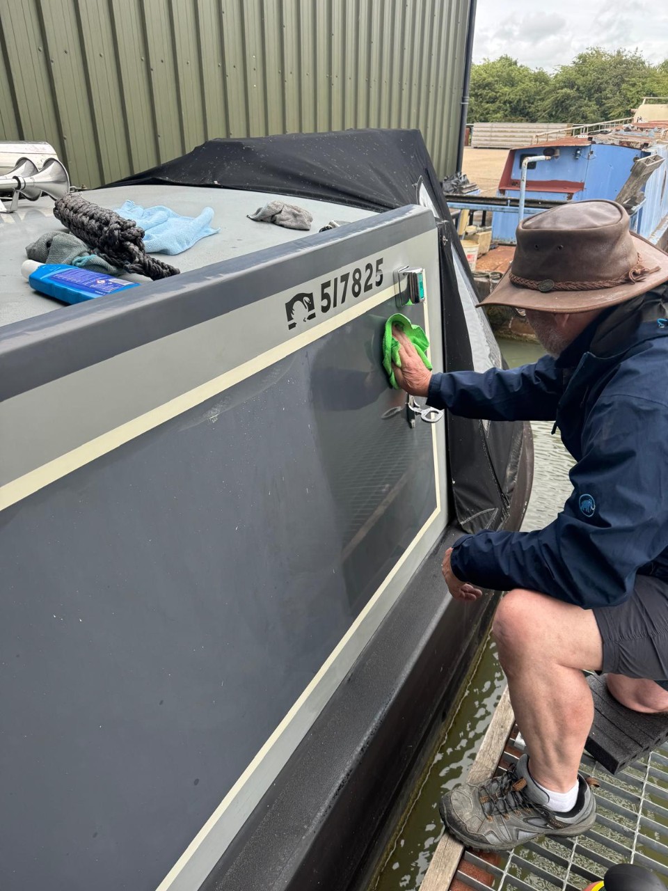 Polishing the boat day. It was hard work. There is a lot of boat in 65 feet length!! The weather was terrible but we were undercover in the marina’s service dock
