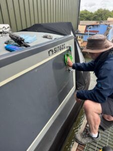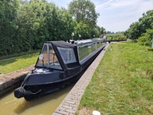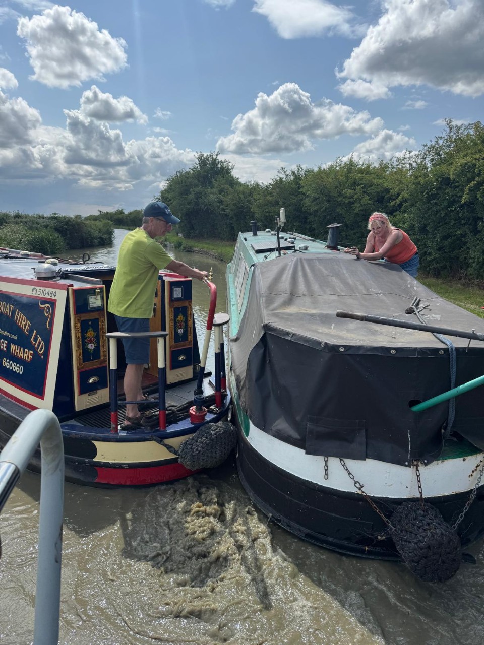 The cruise started well and the weather was warm and dry. We eventually moored up at a mooring with little internet – catastrophe!! We moved on only to come across an unmanned drifting boat which had broken free in the high winds. We decided to re-moor the boat, with help from another boater. However, the boat and lines were filthy. We did eventually secure it and carried on but without the bow thruster, which had blown. It wasn’t the fuse but the sheer pin. We moored up just above the Napton flight of locks and tried to fix the bow thruster. It took about 2 hours but succeeded, with me covered in dirt and oil. Note to self ” put in a lower value fuse ie 350 amps so that goes before the sheer pin!!!”.
